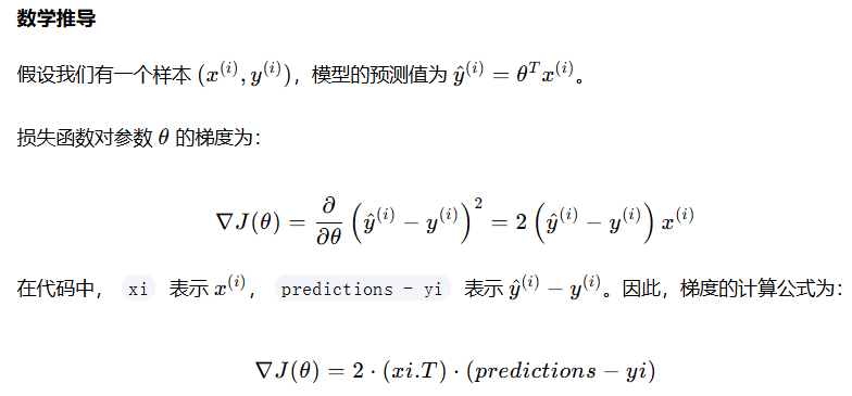 这里我们重点解释一下损失函数对参数 θ 的梯度,即均方误差(MSE)损失函数对参数 θ 的导数,这行代码的含义。