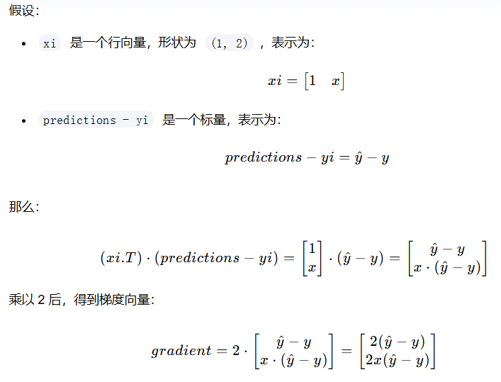 gradient = 2 * xi.T.dot(predictions - yi)