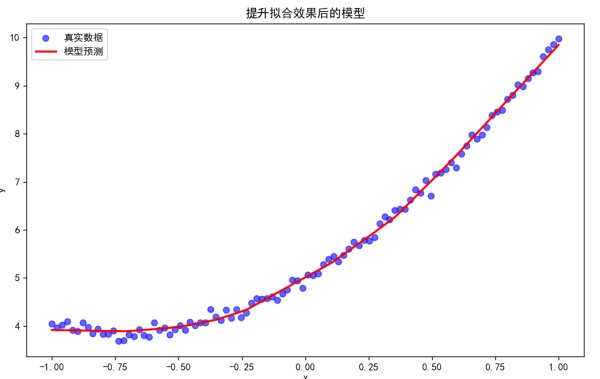 我们可以通过增加模型的复杂度来提升拟合效果,代码修改如下: