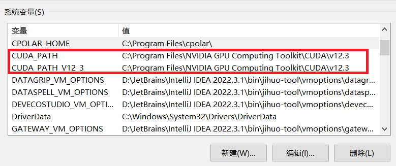 cuda环境安装成功后,会自动配置好相应的环境变量。