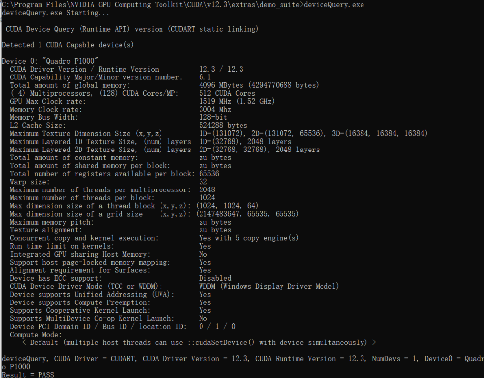 测试CuDNN是否安装成功,在C:\Program Files\NVIDIA GPU Computing Toolkit\CUDA\v12.3\extras\demo_suite 目录下打开命令窗口。