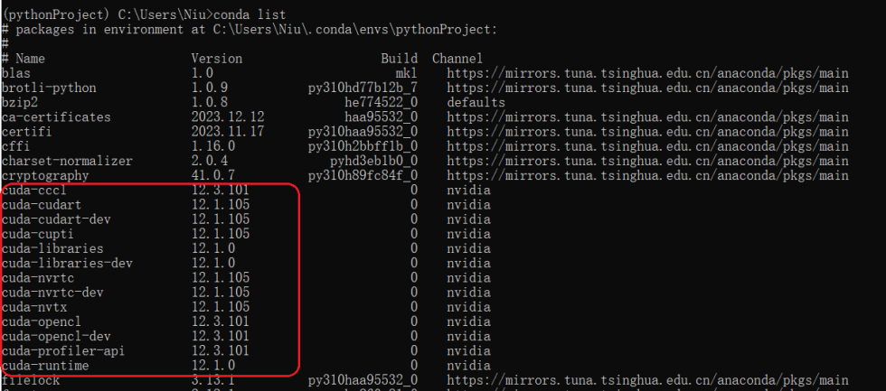 输入conda list查看是否安装成功。