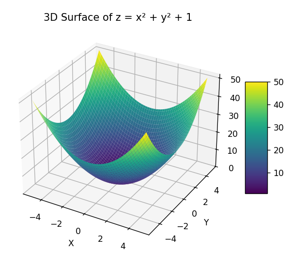 ax.set_title('3D Surface of z = x² + y² + 1')
