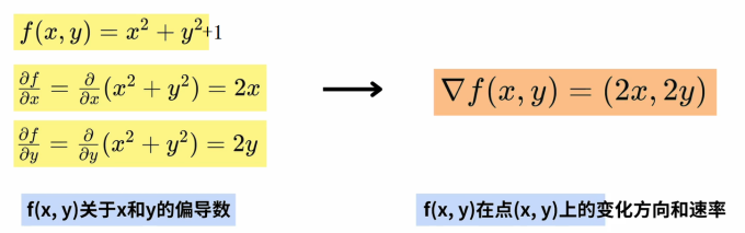 我们知道:梯度(gradient),是多元函数全部偏导数所构成的向量。f(x,y) = x^2 + y^2 +1 的梯度计算过程如下: