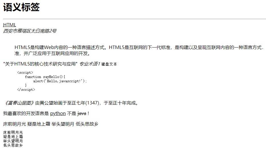 HTML5常用语义标签如下: