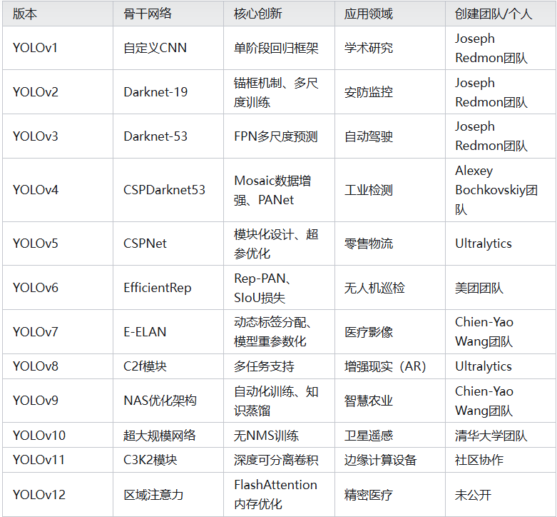 - 高准确率:尽管早期版本(如YOLOv1、YOLOv2)在准确率上有所欠缺,但经过多次迭代(如YOLOv5),其准确率已大幅提升,同时保持了较快的检测速度。