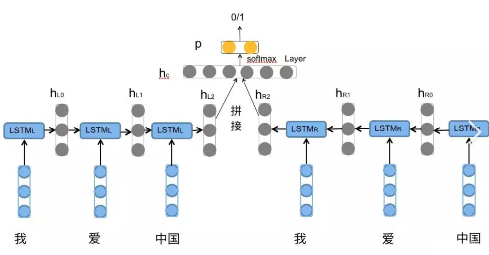 BiLSTM同时从左到右和从右到左处理单词,因此可以同时利用左侧和右侧的上下文信息。例如: