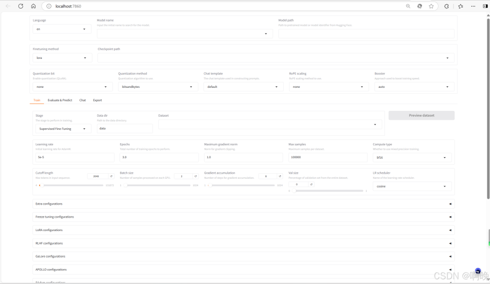 通过以下命令启动 LLaMa-Factory 可视化微调界面: