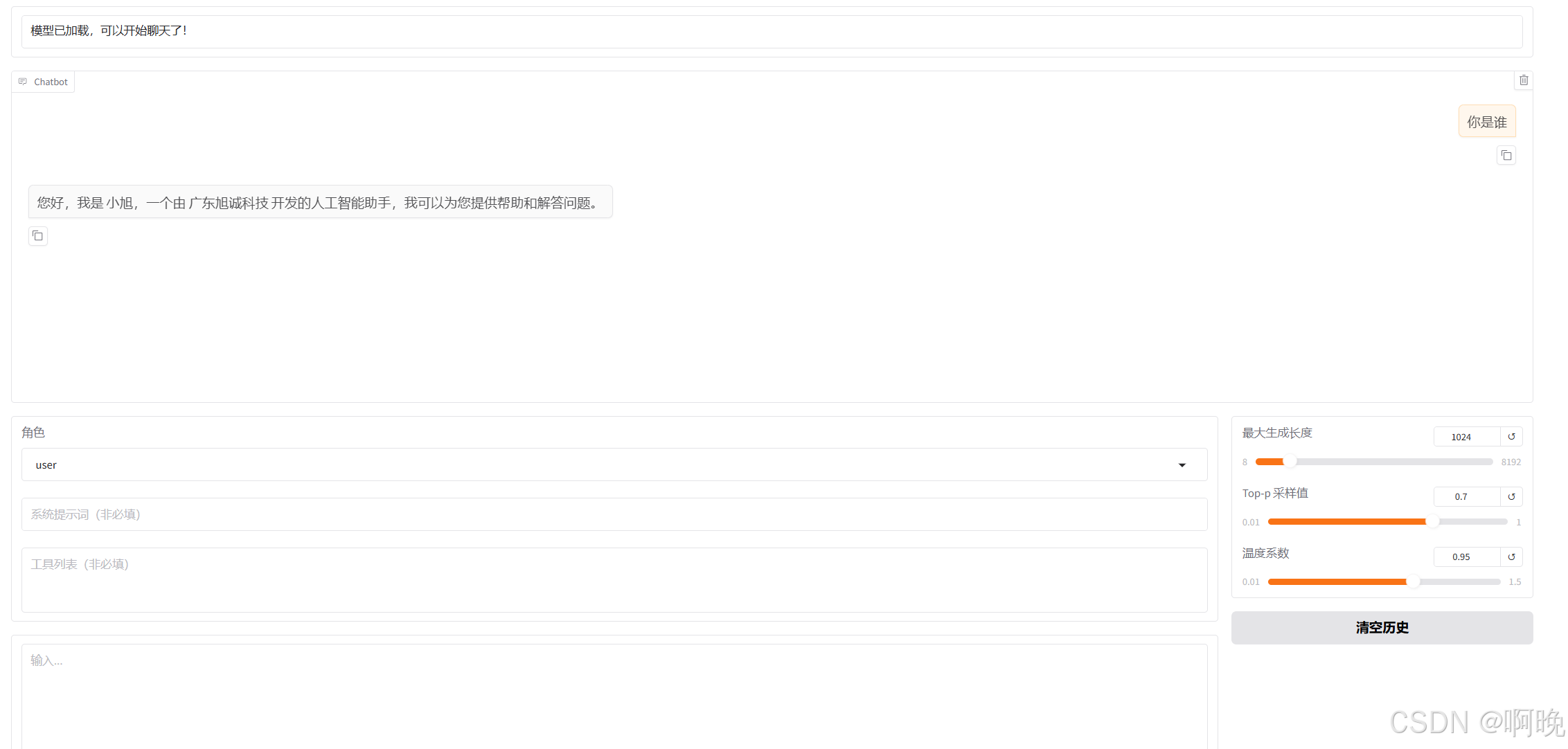 之后就可通过和模型进行对话,测试下载下来的模型是否正常了,也可以看下对话中模型输出的风格,和我们微调之后的做下对比。
