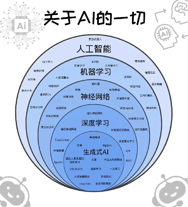 人工智能(Artificial Intelligence, AI):是计算机科学的一个分支,涉及通过计算机程序和算法来模拟人类智能的技术和理论。AI的核心在于创造能够模拟人类思维和行为的机器,包括学习、推理、解决问题、感知、语言理解和创造力等。