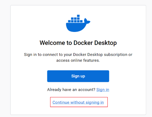 运行Docker Desktop,第一次运行出现以下界面,无需登录,一键跳过。