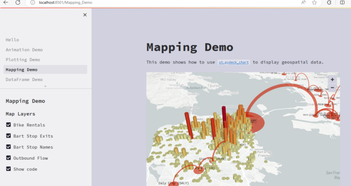 Streamlit是一个用于机器学习、数据可视化的 Python 框架,它能几行代码就构建出一个精美的在线 app 应用。相比于Gradio它有更强大的功能。