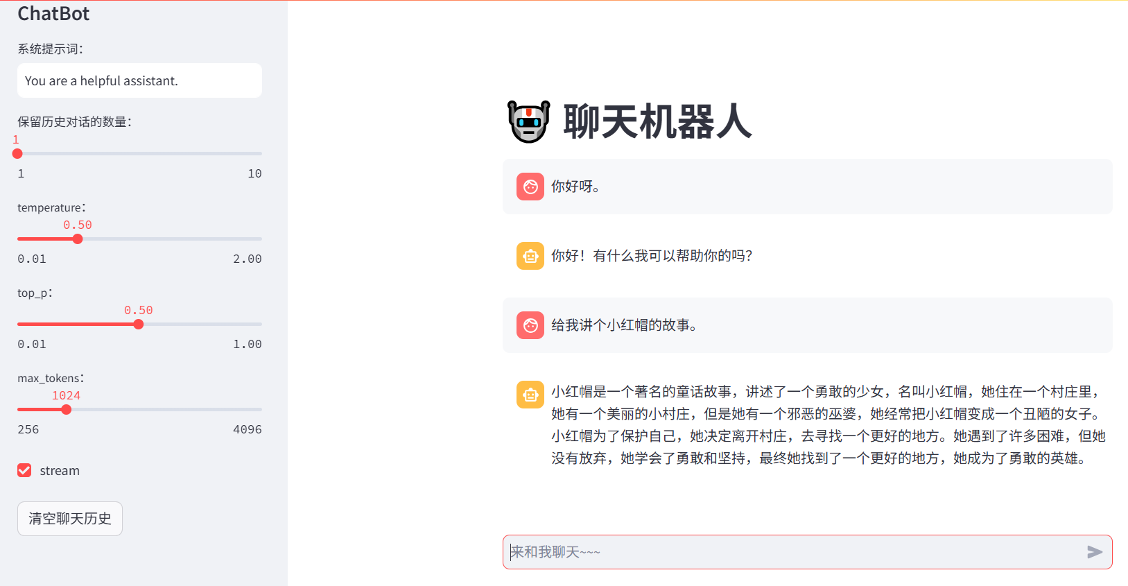 sys_prompt = st.text_input("系统提示词:", value="You are a helpful assistant.")