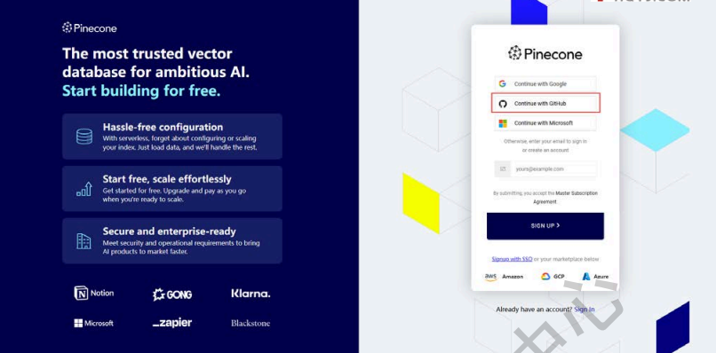 专为构建和运行向量数据库而设计,提供简单易用的API。支持高效的相似性搜索和实时数据更新。提供管理和监控功能,易于扩展。注册Pinecone获取api key安装 Pinecone。