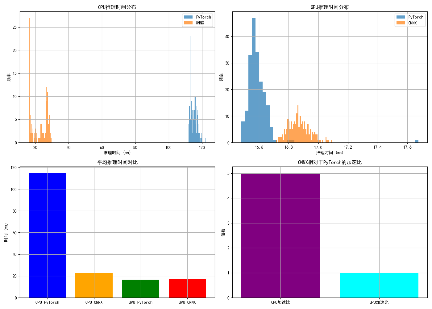 print(f"GPU 加速比: {np.mean(gpu_results['pt']) / np.mean(gpu_results['onnx']):.2f}x")