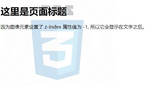 <p>因为图像元素设置了 z-index 属性值为 -1, 所以它会显示在文字之后。</p>