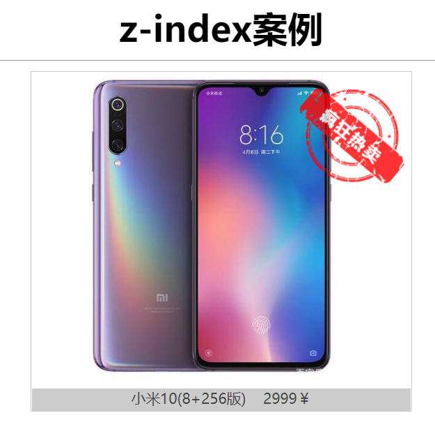 z-index 属性指定一个元素的堆叠顺序。 拥有更高堆叠顺序的元素总是会处于堆叠顺序较低的元素的前面。 注意: z-index 进行定位元素(position:absolute, position:relative, or position:fixed)。