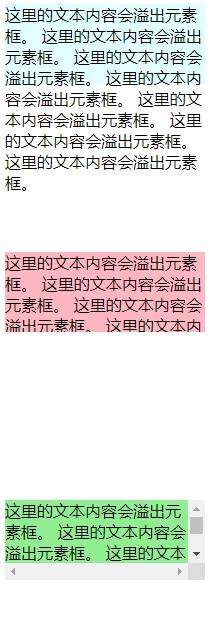 | auto | 如果内容被修剪,则浏览器会显示滚动条以便查看其余的内容。 |