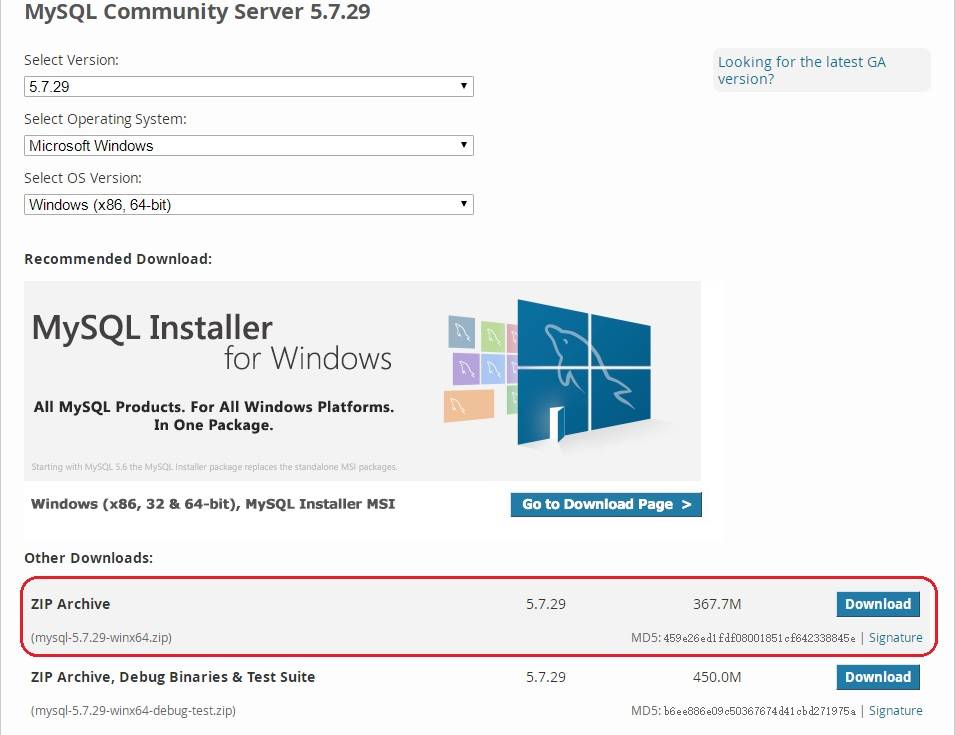 选择适合的操作系统平台和版本号,这里推荐下载5.7.29x46 for windows版本。如下图所示: