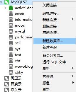 双击要使用的连接,弹出菜单选择'新建数据库',如下图:
