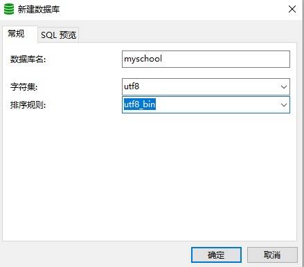 输入数据库名字,使用正确的字符集编码和排序规则。点击确定即可。