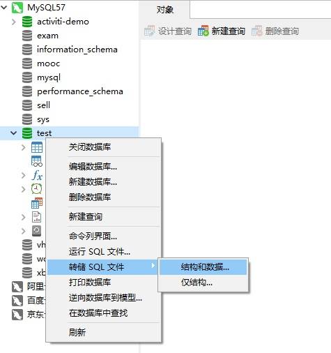 在数据库弹出菜单,选择‘转储SQL文件’和‘运行SQL文件’,可以实现数据库的导出和导入。