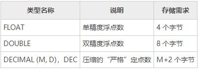 浮点类型和定点类型都可以用(M, D)来表示,其中M称为精度,表示总共的位数;D称为标度,表示小数的位数。