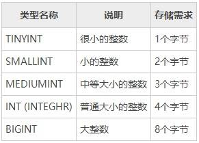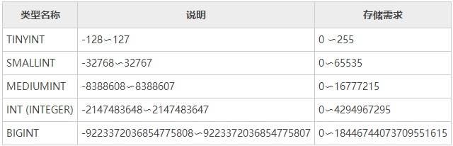 1)MySQL的整数类型