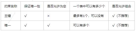 唯一约束与主键的区别: