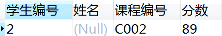 其中成绩表的SID和学生表的SID之间并不构成外键关联关系,也就是说成绩表中允许出现学生表中不存在的学生记录。因此在成绩表中出现了一条非法记录编号为2的学生,课程C002的成绩为89分。