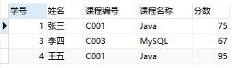 实例: 测试数据延续使用"MySQL连接"章节所用到的三张数据表:学生表、课程表和成绩表。