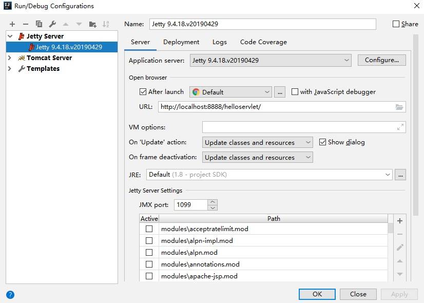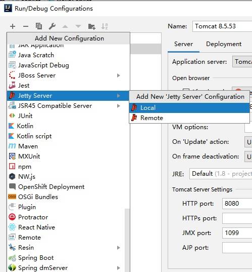 1)Run/Debug Configuarations,Jetty Server-->local. 如下图所示: