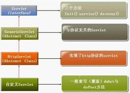 Servlet的继承结构如下。 - Servlet接口:定义了Servlet应该具有的基本方法 - GenericServlet:抽象类,实现了Servlet接口。通用基本Servlet实现,对于不常用的方法在这个实现类中进行了基本的实现,将Service设计为了抽象方法,需要子类去实现 - HttpServlet:抽象类,继承了GenericServlet类。在通用Servlet的基础上基于HTTP协议进行了进一步的强化:复写了GenericServlet中的Service方法,Service方法体内的代码会自动判断用户的请求方式,如为GET请求,则调用HttpServlet的doGet方法,如为Post请求,则调用doPost方法。因此,开发人员在编写Servlet时,通常只需要继承HttpServlet,然后覆写doGet或doPost方法,而不要去覆写service方法。