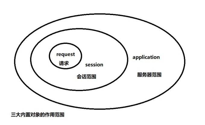 java web开发中servlet三大作用域对象为request、session和application(ServletContext)。