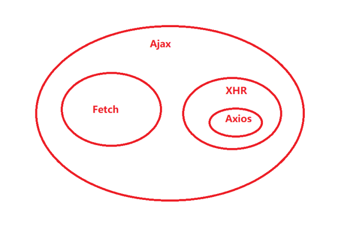 Ajax、Fetch、axios三者之间的关系可以用一张图来清晰的表示,如图: