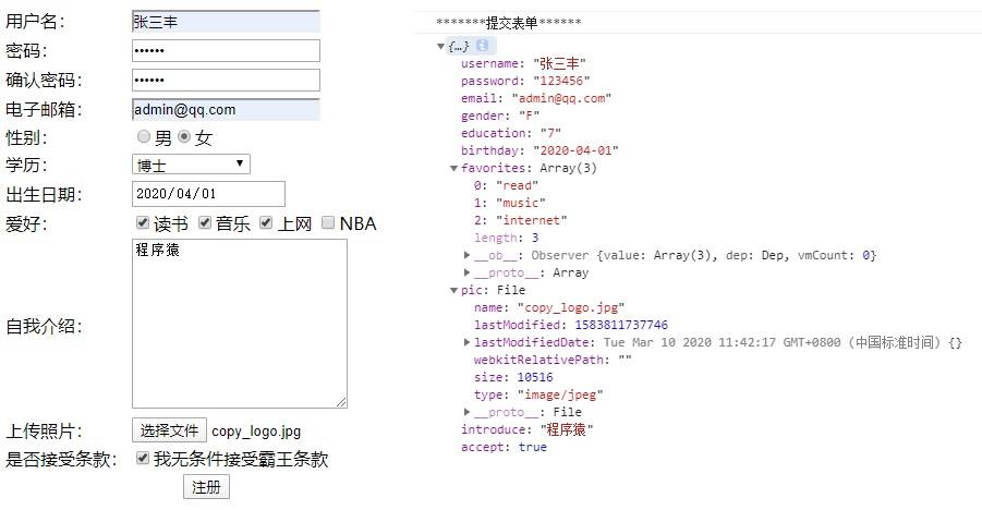 由于Vue是一个轻巧、高性能、可组件化的 MVVM 库,所以使得Vue更轻松的获得表单数据,实现数据的双向绑定。
