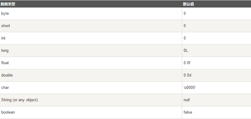 基本数据类型的默认值。