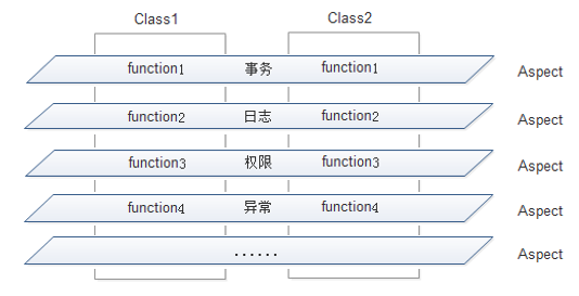 AOP(Aspect-Oriented Programming)即面向切面编程,是对于OOP的补充。不同于OOP的面向纵向编程,AOP面向的是切面即横向编程,它将纵向的某个流程提取出来,给其添加相应的功能。