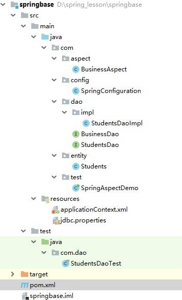 比如:要测试com.dao.StudentsDao类,创建一个和测试类相同的包com.dao,如下图所示: