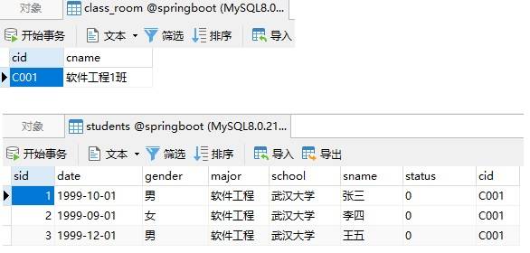 我们以一个班级有多个学生为例,讲解Spring Data JPA如何实现多对一的映射关系。