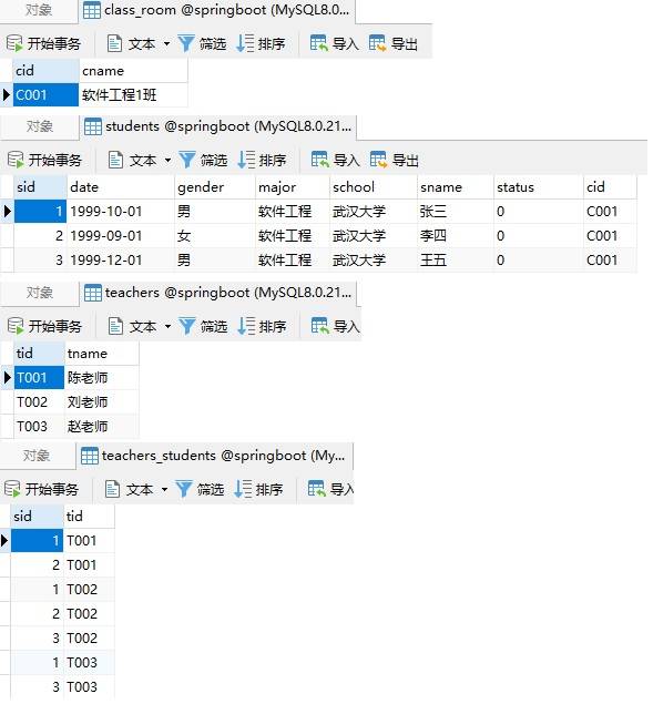 我们以生活中一个老师教多个学生,一个学生有多个老师为例,讲解Spring Data JPA如何实现多对多的映射关系。