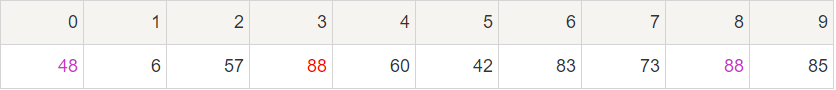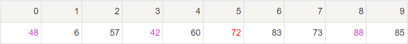 i = 3; j = 7; X=72 再重复上面的步骤,先从后向前找,再从前向后找。