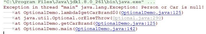 //return person.map(per->per.getCar()).map(c->c.getBrand()).orElseThrow(()->new Exception("Person or Car is null!"));