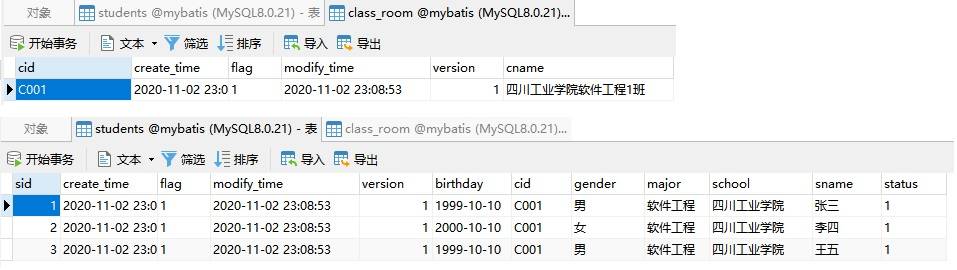 Students s3 = new Students(3,"王五","男","1999-10-10","四川工业学院","软件工程",true,classRoom.getCid());