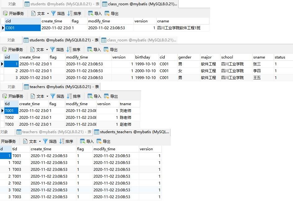 测试多对多的映射关系。由于篇幅限制Students和Teachers的Mapper和Service层代码省略,大家可以自行参考前面案例实现。