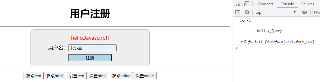 <input type="button" value="设置text" id="btn3"/><input type="button" value="设置html" id="btn4"/>