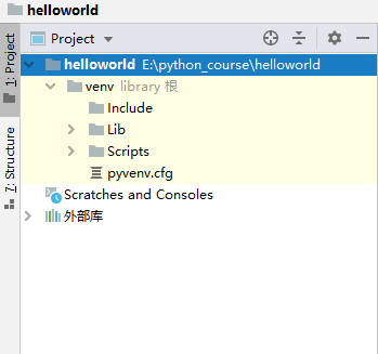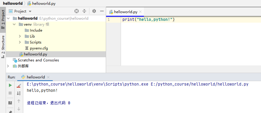 6.选中helloworld.py,弹出菜单选择"运行"。在控制台窗口显示运行结果。