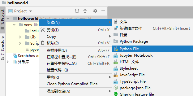 4.选中工程目录,新建Python File.