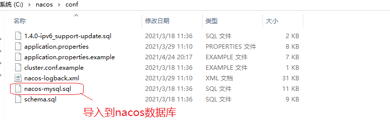 3.在nacos的conf目录下把nacos-mysql.sql导入到nacos数据库。