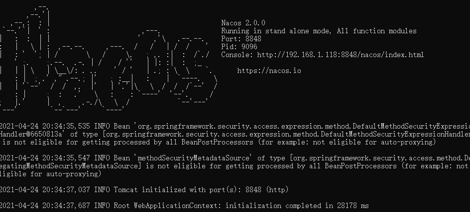 6.双击startup.cmd启动nacos服务。出现以下信息说明服务器启动成功!
